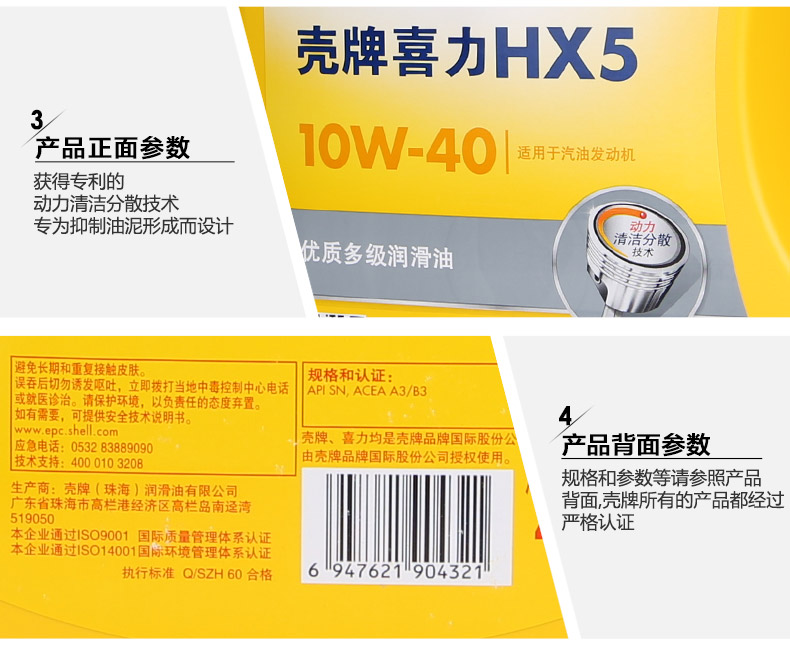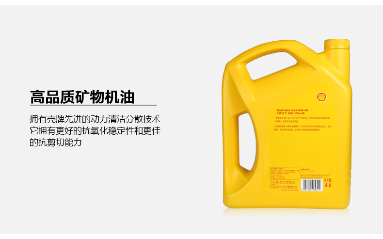 > 壳牌机油 黄壳黄喜力正品HX5 10w-40 汽车发动机润滑油 SN 4L